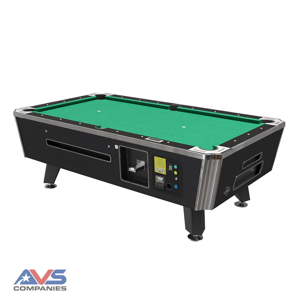 Valley’s flagship Panther ZD12-X™ electronic table adds versatile and friendly programmable features to the attractive looks of the Panther ZD-12. The upgraded battery, charger and bill acceptor bring longer life, faster charges and improved reliability. Our software incorporates a one-touch battery test feature, an industry-leading League Dues management software, expanded accounting options, and even more Happy Hour, time play and bonus pricing choices. The 5-bolt dual density cushions, Valley Ultra cloth and the perfectly-balanced Saluc ball are all designed to improve playability…and profitability. Shown in standard green cloth.